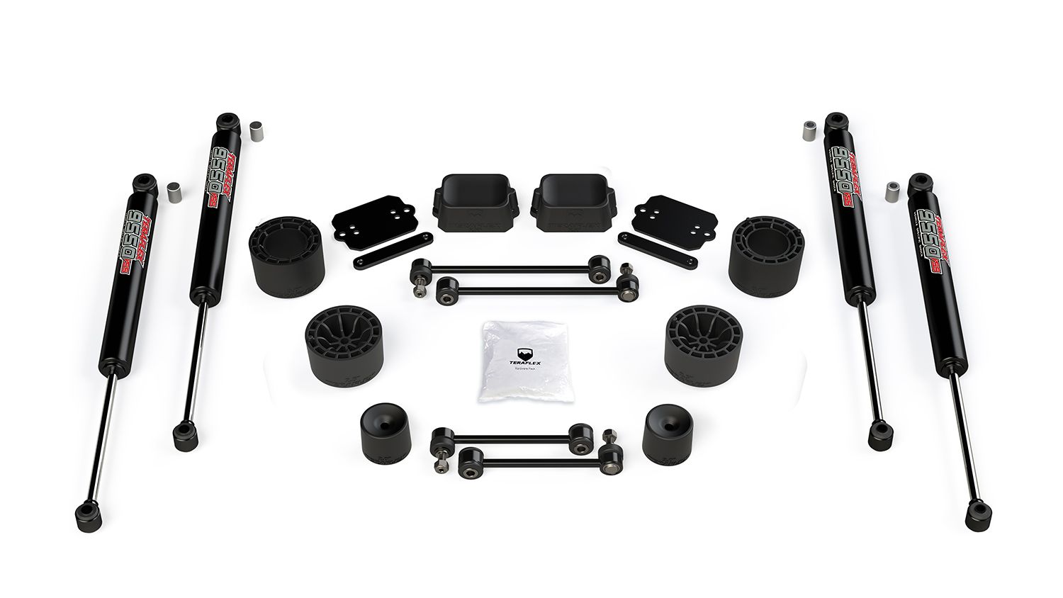 • Requires longer shocks or Shock Extensions (# 1985200) (NOT INCLUDED in base kit) – TeraFlex 9550 VSS Twin Tube Shocks (# 1545250) or Falcon Performance SP2 Mode Adjust Shocks (available separately) recommended.