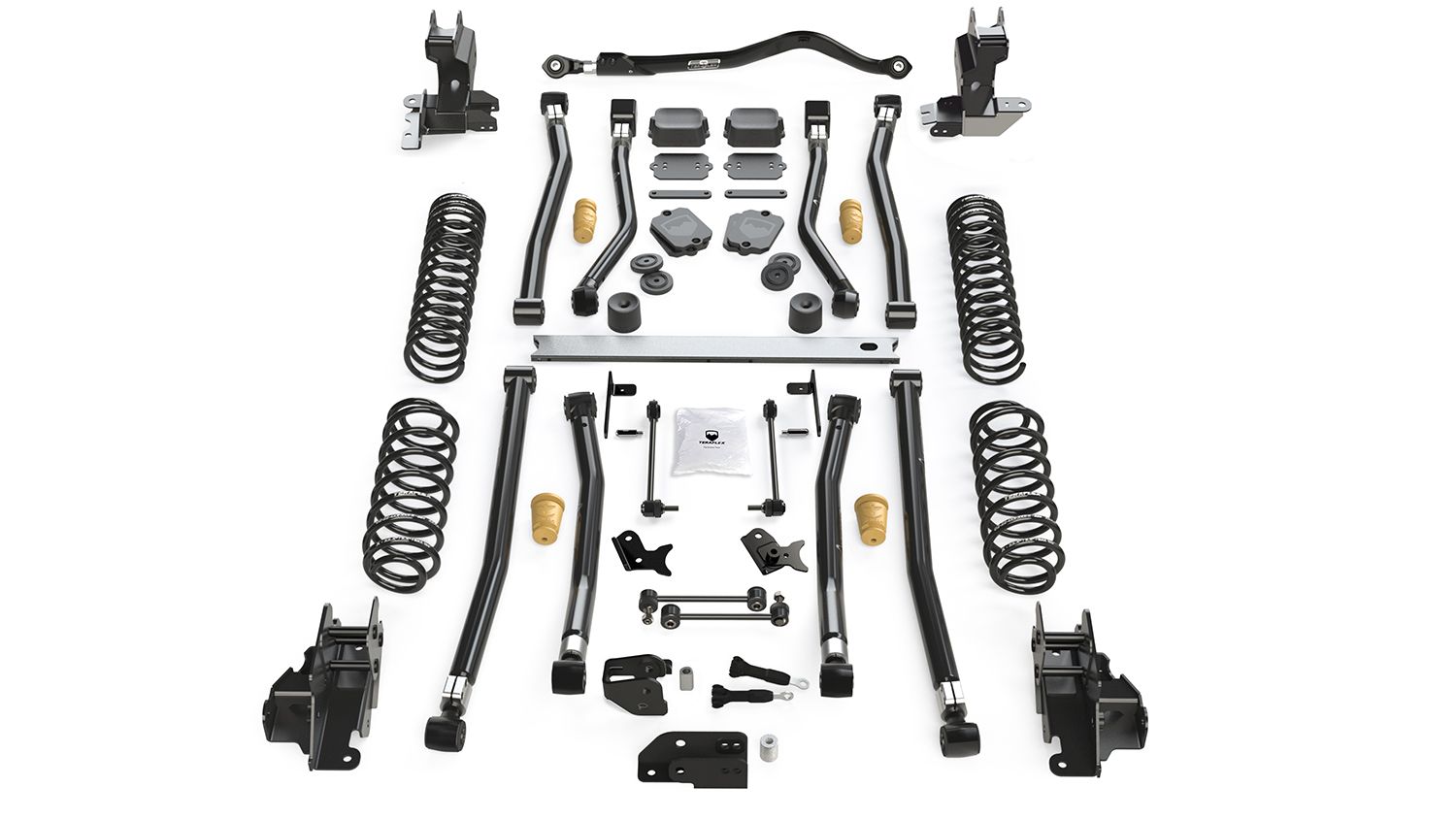 TeraFlex Alpine CT (Cross-Trail) Suspension Systems build on our Sport ST (Street & Trail) Suspension Systems. A 3.5" suspension system opens up a new world of tire sizes and off-road possibilities. If you have that do-it-all" attitude one of our 3.5" Alpine CT3 Suspension Systems will make it happen. The Alpine CT3 Long Arm features our Alpine Long Control Arms & Brackets, as well as a Front HD, Forged Adjustable Track Bar, and Front and Rear Track Bar Axle Brackets for maximum tunability and flawless performance for years to come. Adjustable Alpine Long Control Arms balance front caster and pinion angles as well as optimize rear pinion angles anti-squat geometry and tire position on vehicles with 3-6" lifts. On higher lifts, Alpine Long Arm Brackets reposition frame-end control arm mounting points to restore near factory orientation to reduce bushing stress during extreme droop as well as shock load transferred through the Alpine Long Control Arms. The Front HD Forged Adjustable Track Bar and Front and Rear Track Bar Axle Brackets improve the steering response center of the axles to optimize the vehicle roll center and reduce body roll for unsurpassed handling. This results in improved suspension geometry and relaxed control arm angles for superior ride quality and performance regardless of the terrain. These systems restore front and rear roll axis angles to minimize brake dive and acceleration squat. TeraFlex suspension systems provide reduced noise vibration and harshness (NVH). Alpine CT Suspension Systems are engineered for hardcore Jeeping without sacrificing weekday ride comfort! Does NOT include shocks. We recommend Falcon Performance Shocks. Falcon shock absorbers and TeraFlex lift coil springs have been engineered together to improve both compressions and rebounds for optimal vehicle stability. Falcon shocks and steering stabilizers are sold separately.