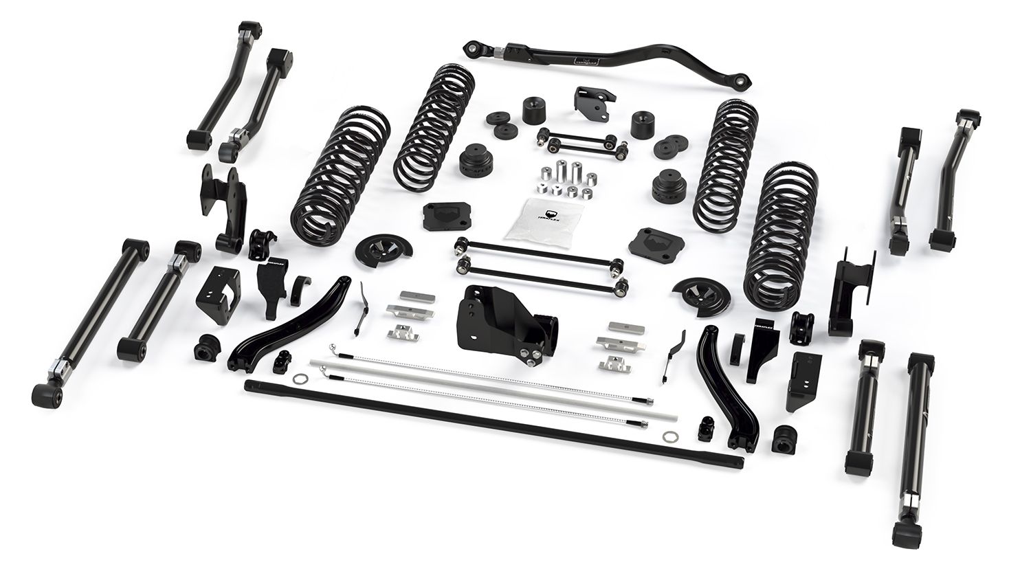 TeraFlex Alpine CT (Cross-Trail) Suspension Systems build on our Sport ST (Street & Trail) Suspension Systems. A 3.5” suspension system opens up a new world of tire sizes and off-road possibilities. If you have that “do it all” attitude, the 3.5” Alpine CT3 Short Arm Extended-Travel Suspension System will make it happen. Our Alpine Short Control Arms, Front HD Forged Adjustable Track Bar, and Front and Rear Track Bar Axle Brackets combined with our extended-travel components provide maximum tunability and flawless performance for years to come. Adjustable Alpine Short Control Arms balance front caster angle and pinion angles as well as optimize rear pinion angles, anti-squat geometry, and tire position on vehicles with 0–4.5” lifts. The Front HD Forged Adjustable Track Bar and Front and Rear Track Bar Axle Brackets improve steering response, center the axle to optimize vehicle roll center, and reduce body roll for unsurpassed handling. Extended-Travel Suspension Systems include carefully selected extended-travel components to safely provide 16” of rear suspension travel. This results in improved suspension geometry and relaxed control arm angles for superior ride quality and performance regardless of the terrain. These systems restore front and rear roll axis angles to minimize brake dive and acceleration squat. TeraFlex suspension systems provide reduced noise, vibration, and harshness (NVH). Alpine CT Suspension Systems are engineered for hardcore Jeeping without sacrificing weekday ride comfort! Does NOT include shocks. We recommend Falcon Performance Shocks. Falcon shock absorbers and TeraFlex lift coil springs have been engineered together to improve both compression and rebound for optimal vehicle stability. Falcon shock absorbers and steering stabilizers are available separately.